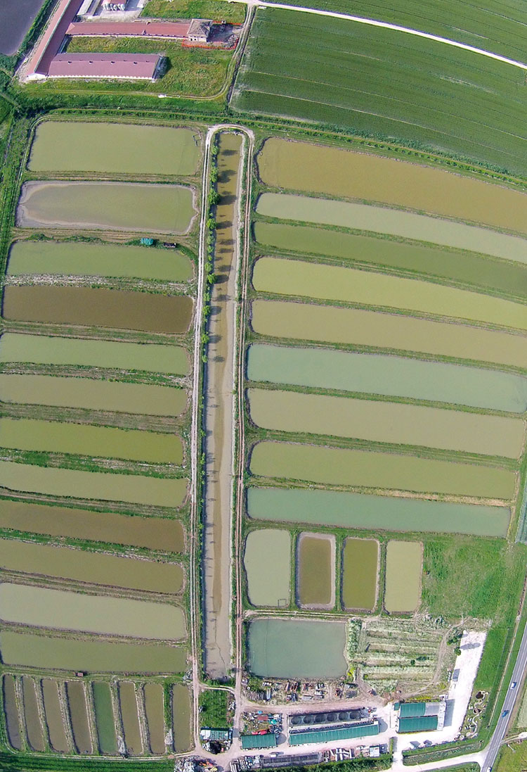 • 20 ettari di vasche in terra dedicate all’allevamento di pesci per l’alimentazione